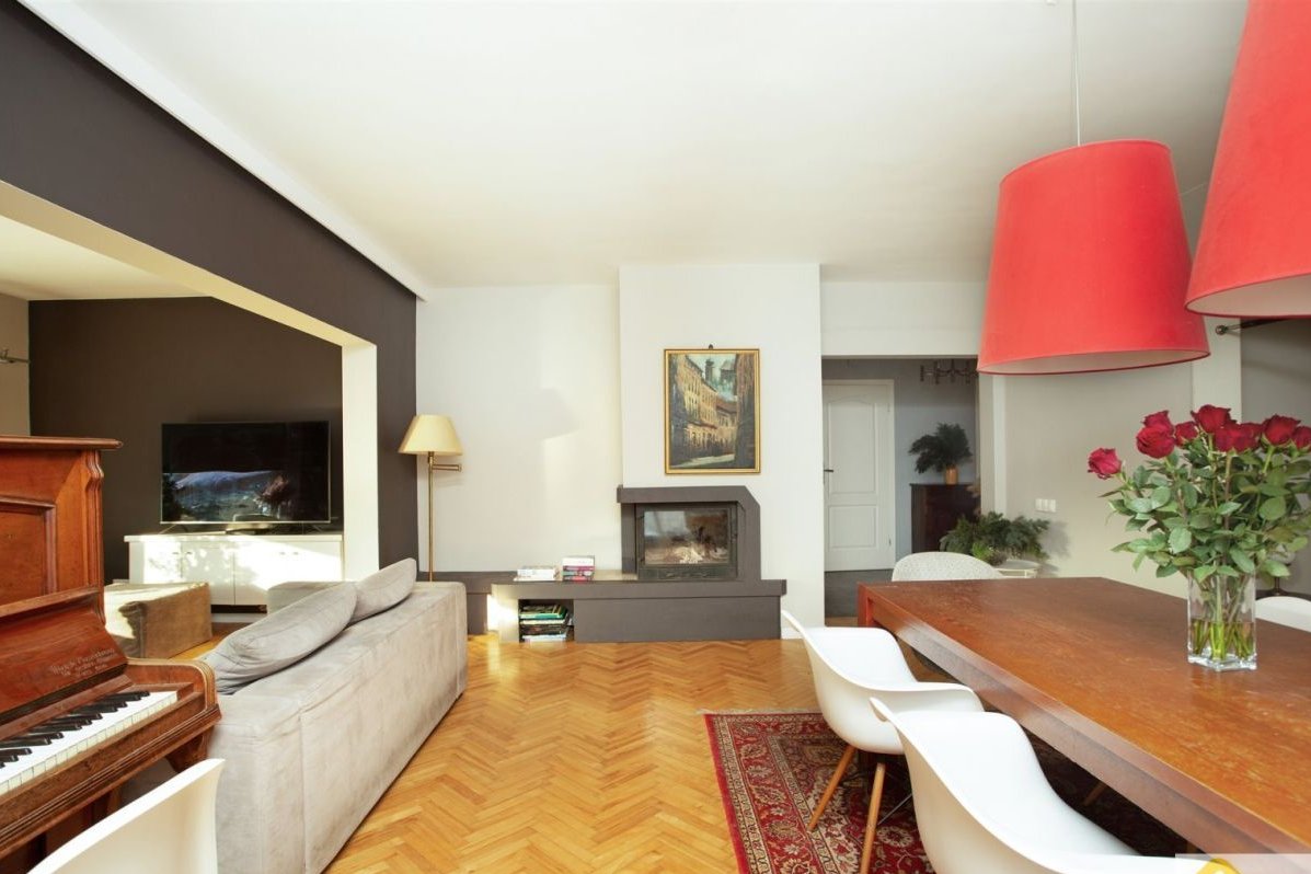 przestronna, słoneczna strefa dzienna z salonem i jadalnią