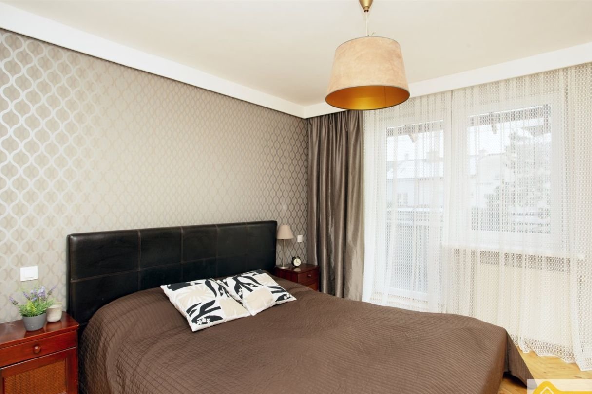 sypialnia z dużą szafą i wyjściem na spory balkon