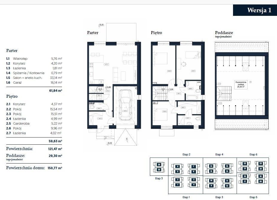 • Możliwość adaptacji poddasza (dodatkowe 29 mkw do codziennego użytkowania!)- już częściowo wykończonego - np. 2 okna połaciowe w cenie