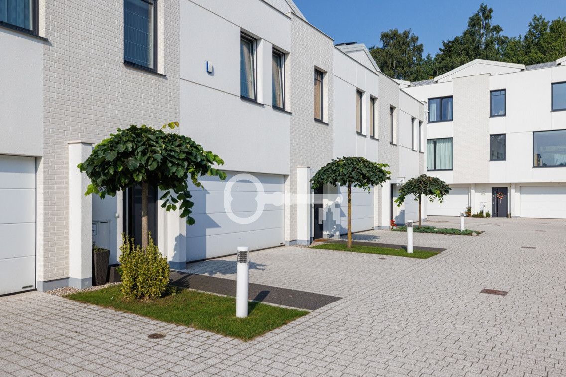 The building’s façade is in excellent condition. The architecture of the estate is characterized by minimalism and elegance. The light façade of the buildings contrasts with the graphite entrance doors and window joinery. Large windows ensure good interior lighting. The intimate gated streets of the estate are finished with surfaces in a light, warm color. The project was created by the ASA Architektoniczne studio.