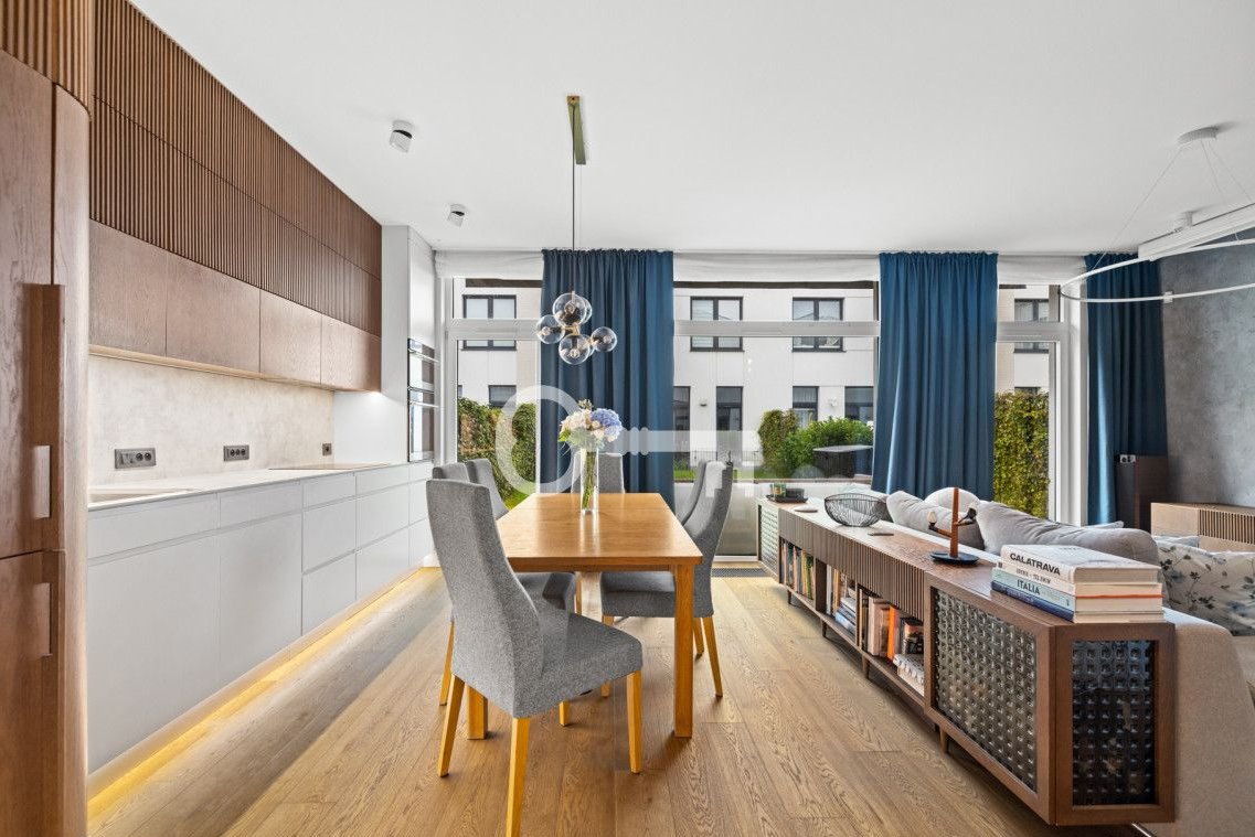 A unique project by the renowned Gdynia architectural studio "Magma", created with the utmost attention to quality and detail for lovers of design and true connoisseurs of interiors full of design at its finest. Products by such masters of design as Dominique Perrault and Gaelle Lauriot-Prevost, Alain van Havre, and Verner Panton elevate the uniqueness of this design-driven project. Noble finishing materials, furniture custom-made for this project. Expansive space, plenty of light, tall door wings as a backdrop for modernist forms, combinations of wood and stone - these are the components of this unique interior. Large glazing in the living room guarantees a view of the sunny terrace, from which we can admire the sunsets. It will be appreciated by anyone who values timelessness, modernity, and at the same time, the highest quality of interior finishes. A comfortable master en-suite bedroom, luxuriously finished kitchen, spacious living room, and top-quality finishing materials are certainly not the only advantages of this property.