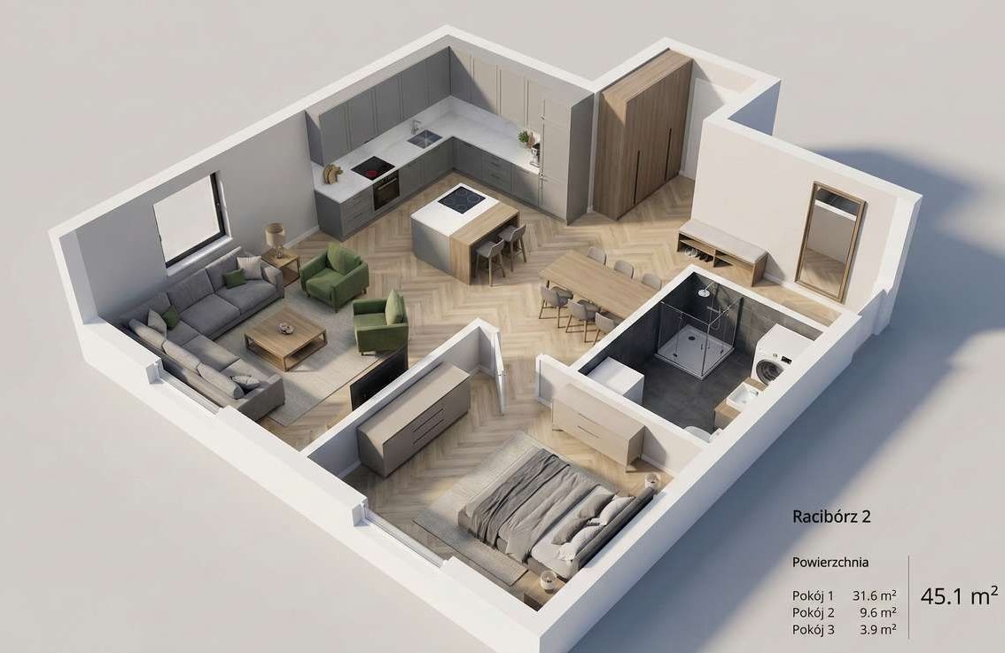 Zapraszamy do zapoznania się z ofertą sprzedaży funkcjonalnego, 2-pokojowego mieszkania w nowo powstającej inwestycji przy ul. Drewnianej 6 w Raciborzu.