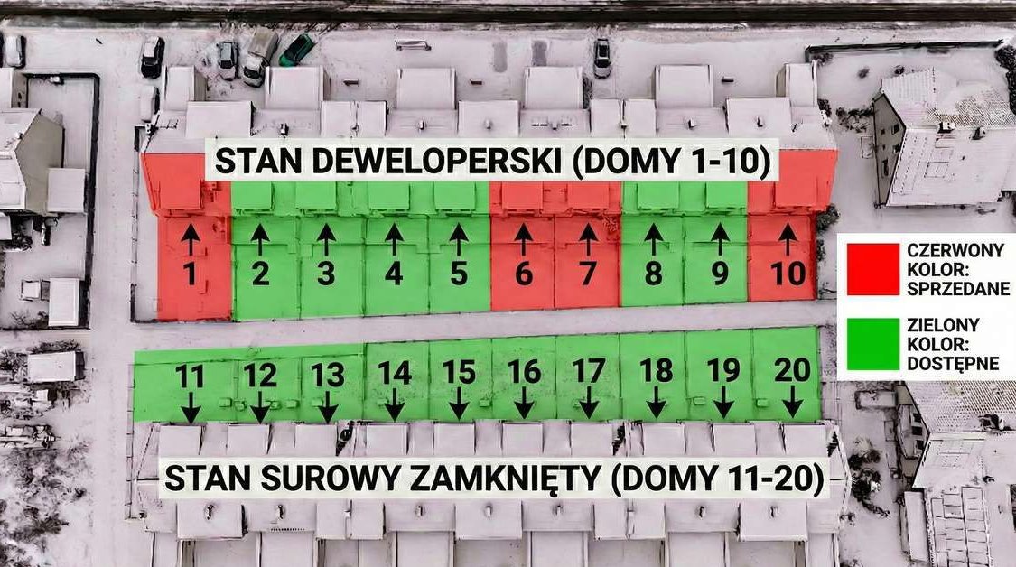 Oferujemy na sprzedaż nowoczesne, dwukondygnacyjne domy w zabudowie szeregowej. Inwestycja jest już zrealizowana – domy są wybudowane, co gwarantuje bezpieczeństwo transakcji.