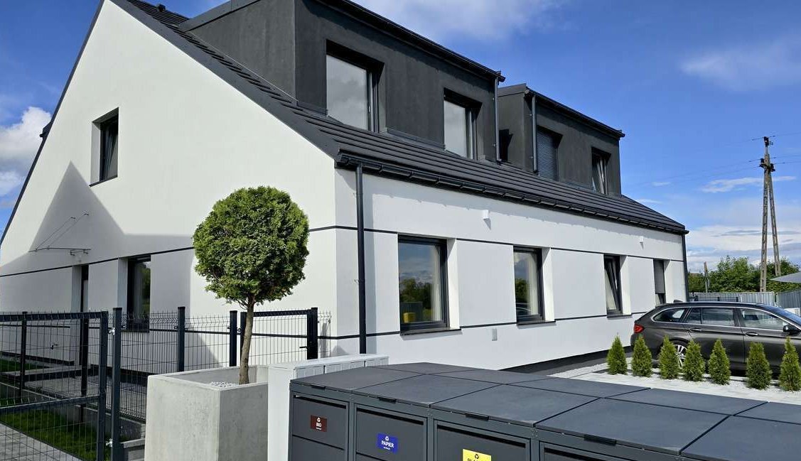 Budynki znajdują się na kameralnym, zamkniętym bramą elektryczną osiedlu z utwardzoną drogą asfaltową wewnętrzną, podjazdami z kostki brukowej na dwa/trzy samochody, ogrodzeniami oraz nasadzeniami, boxami metalowymi na śmietniki i latarniami. Wszystko gwarantuje deweloper w standardzie bez dodatkowych opłat!