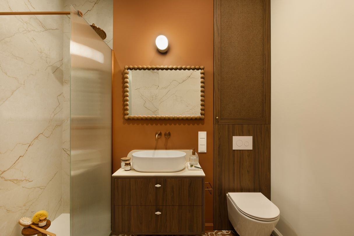 * łazienka w cynamonowym lekko orientalnym odcieniu