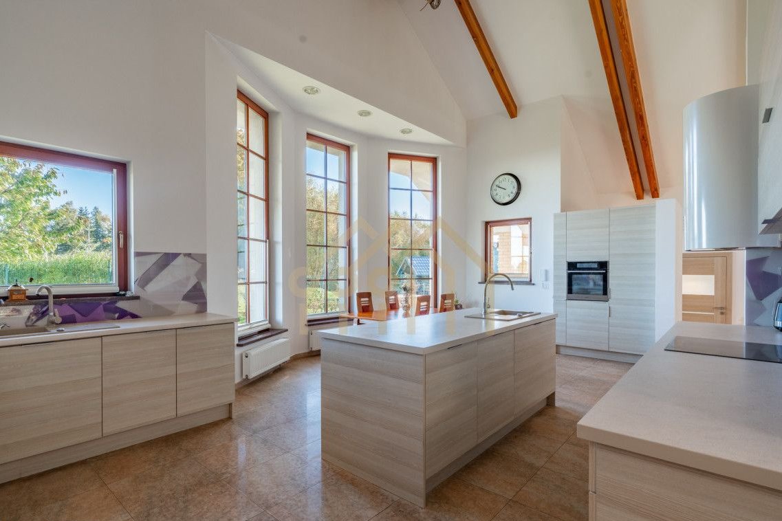 - Przestronny salon z widokiem na las i kuchnia z jadalnią o wysokości sufitu sięgającym 5,38m