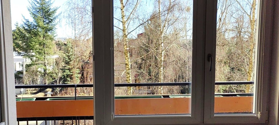 Balkon ok. 5,5m2 z relaksującym widokiem na drzewa