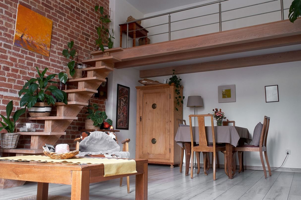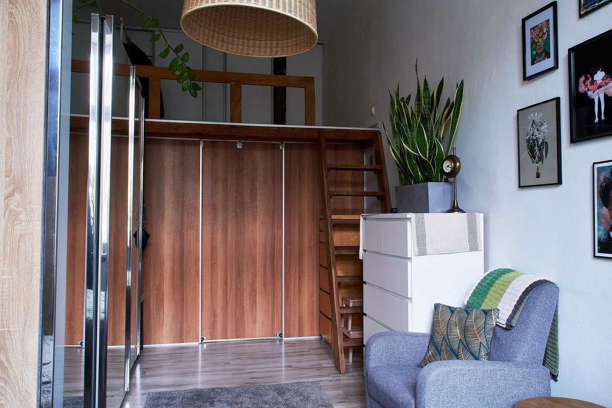 W salonie i sypialni są antresole, dzięki którym uzyskano dodatkową powierzchnię użytkową (garderoba). Nad łazienką znajduje się także dodatkowa powierzchnia do przechowywania rzeczy. Do mieszkania przynależy także piwnica ok 17m2;