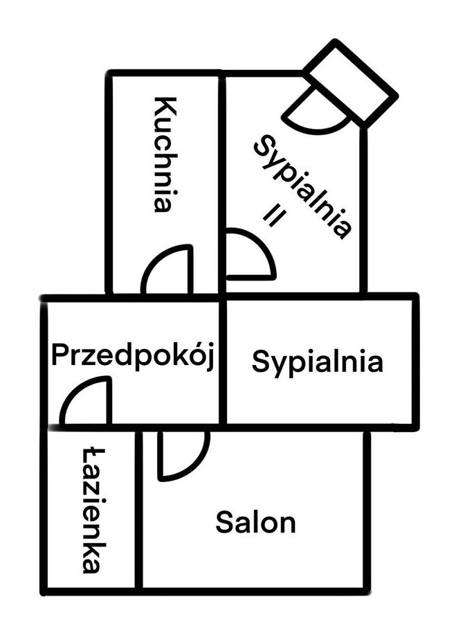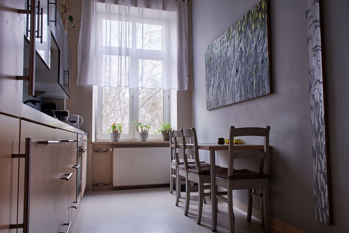 Mieszkanie składa się z 3 pokoi, kuchni, przedpokoju, łazienki oraz niewielkiego balkonu. Ekspozycja okien na północny-wschód, ale dzięki dużej powierzchni okien nie brakuje dziennego światła.