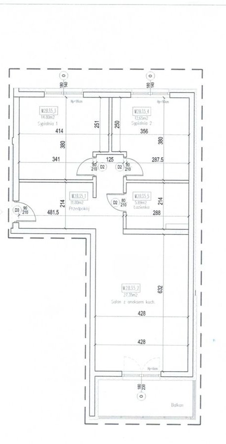 Przestronne 3 pokojowe mieszkanie w stanie deweloperskim z balkonem!