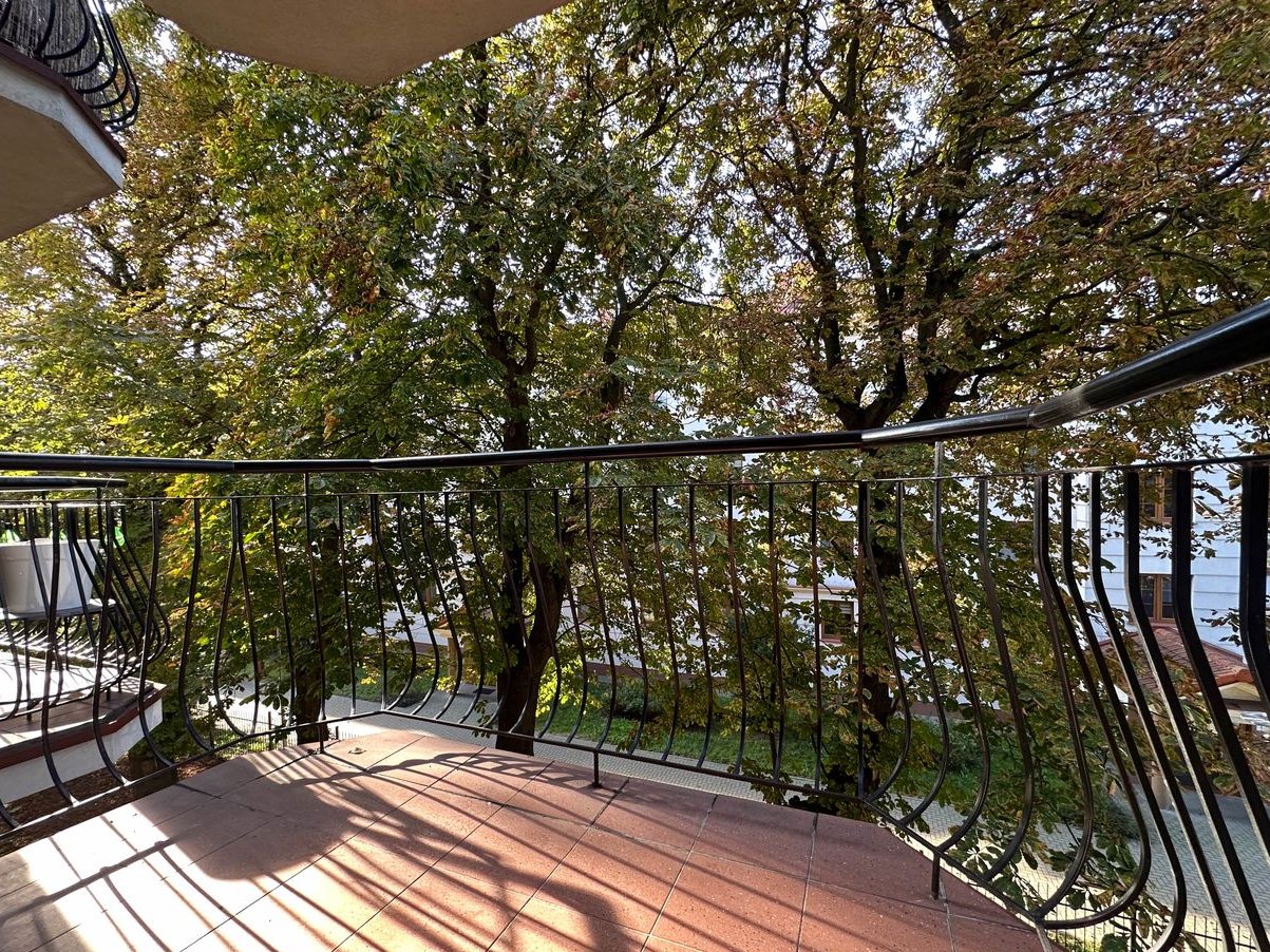 zielona, spokojna okolica, widok z balkonu na drzewa