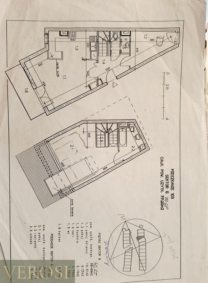 Powierzchnia użytkowa to 69,68 m2, ale licząc po podłodze, powierzchni jest znacznie więcej.
