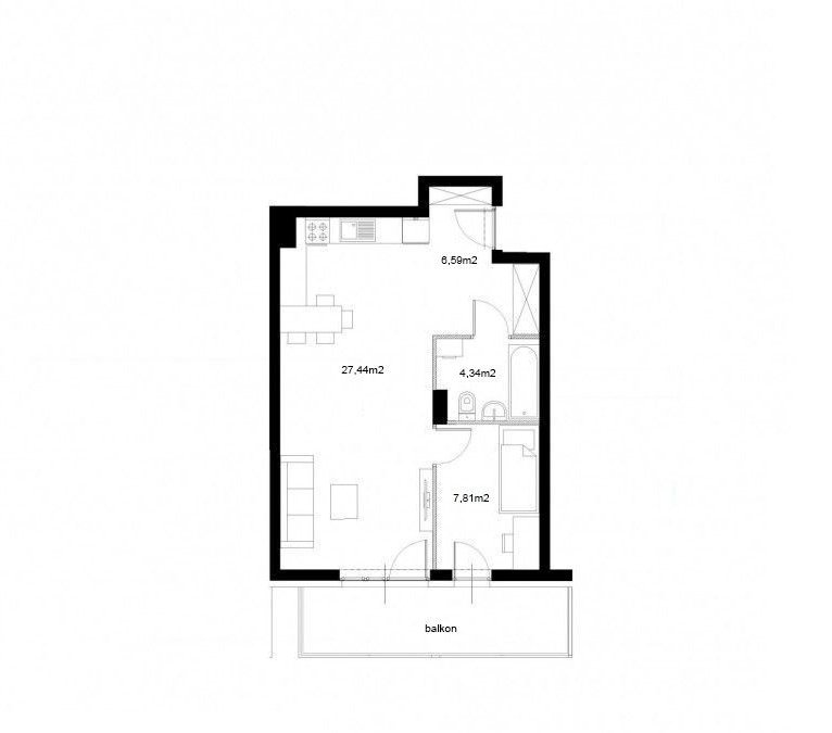 Przestronny salon z kuchnią – 27,44m2 (kuchnia robiona na wymiar)
