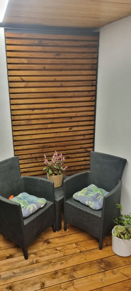 Dwie loggie z podłogą wykończoną deską drewnianą