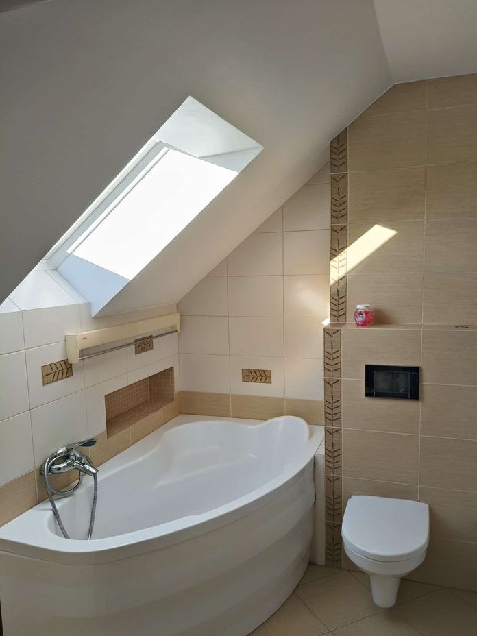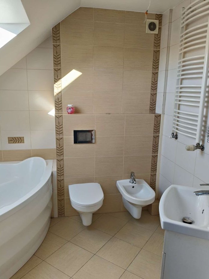 Jest to komfortowe mieszkanie z przestronną częścią dzienną, kuchnią, sypialnią i łazienką na pierwszym poziomie, 2 sypialniami i łazienką na drugim poziomie.