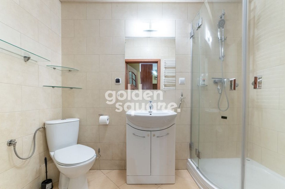 łazienka z kabiną prysznicową – wykończona w neutralnych kolorach,