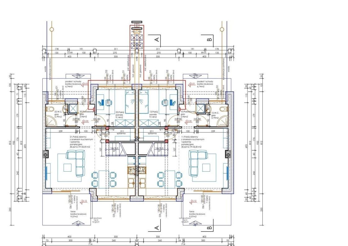 - przyłącza i instalacje (wod.kan.,elektryczne,gazowe)