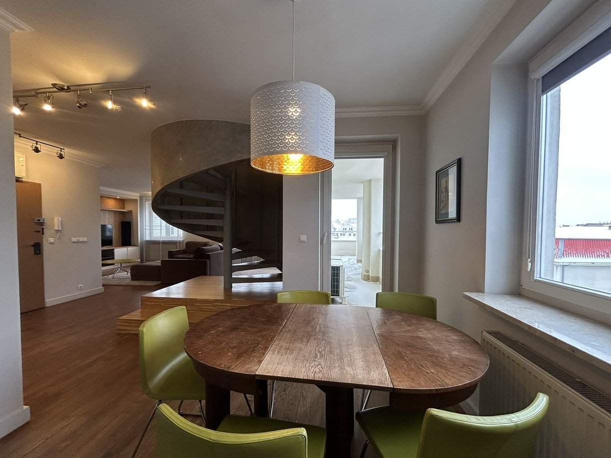 Jeżeli szukasz atrakcyjnego miejsca do zamieszkania, nie chcesz płacić prowizji, dobrze się czujesz na Kabatach, to zainteresuje Cię ten słoneczny, odpowiednio wysoki, ciekawie zaprojektowany i wykończony najwyższej jakości materiałami, 3 poziomowy apartament/penthouse.