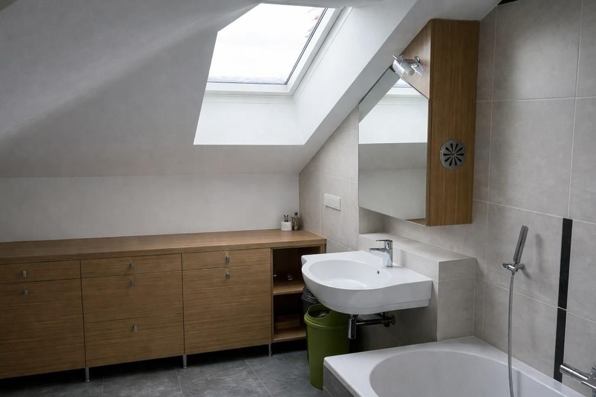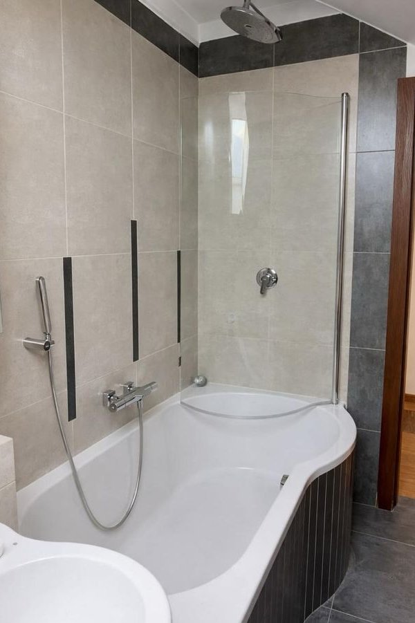 Na tym poziomie znajduje się również dodatkowa łazienka z wanną, zwiększająca komfort codziennego użytkowania tej kondygnacji.