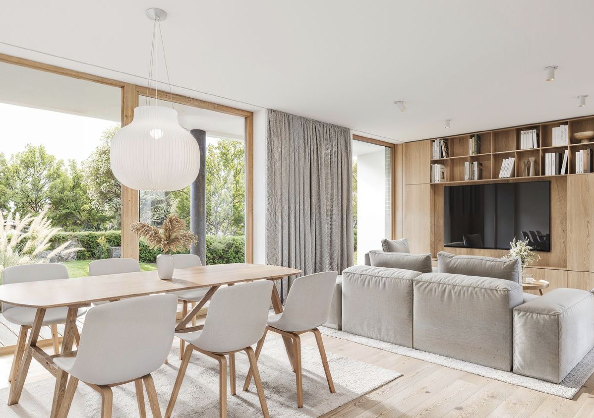 Stawiamy na wysoką jakość stosowanych materiałów, a także na design, dzięki czemu nowoczesna i prosta w kształtach bryła zawiera wiele ciekawych rozwiązań, które są zarazem praktyczne, jak i efektowne. Nasza realizacja charakteryzuje się dużą powierzchnią przeszkleń, dzięki czemu mamy dostęp do światła dziennego, wygodną komunikację z ogrodem, a także wyjątkowy widok z wnętrza na otaczającą nas przyrodę.