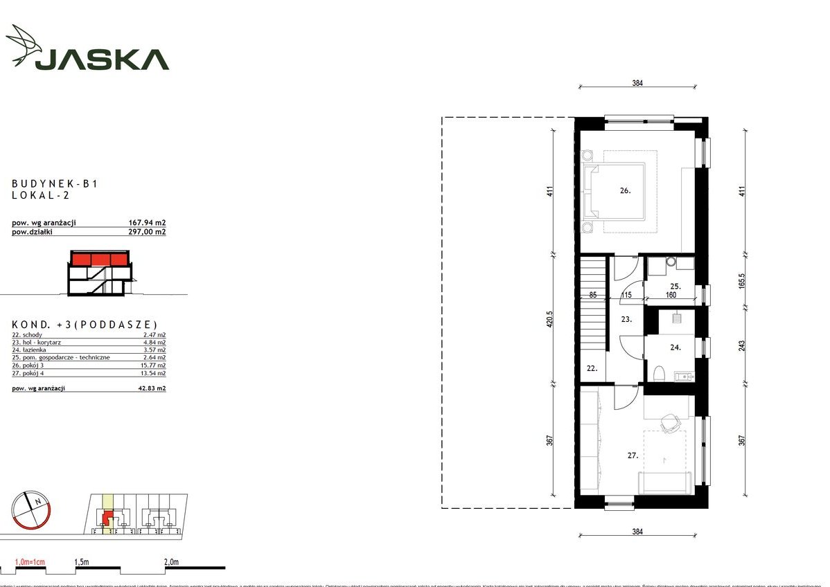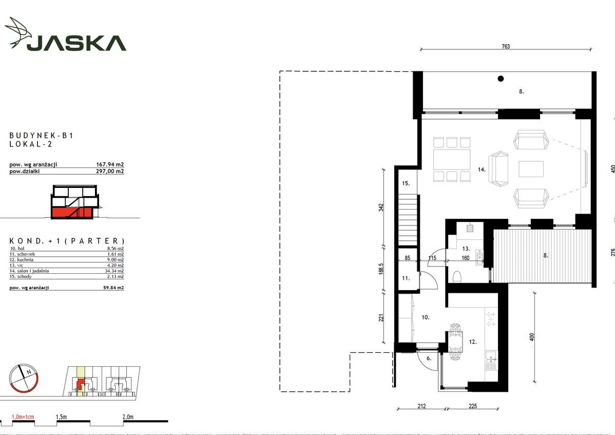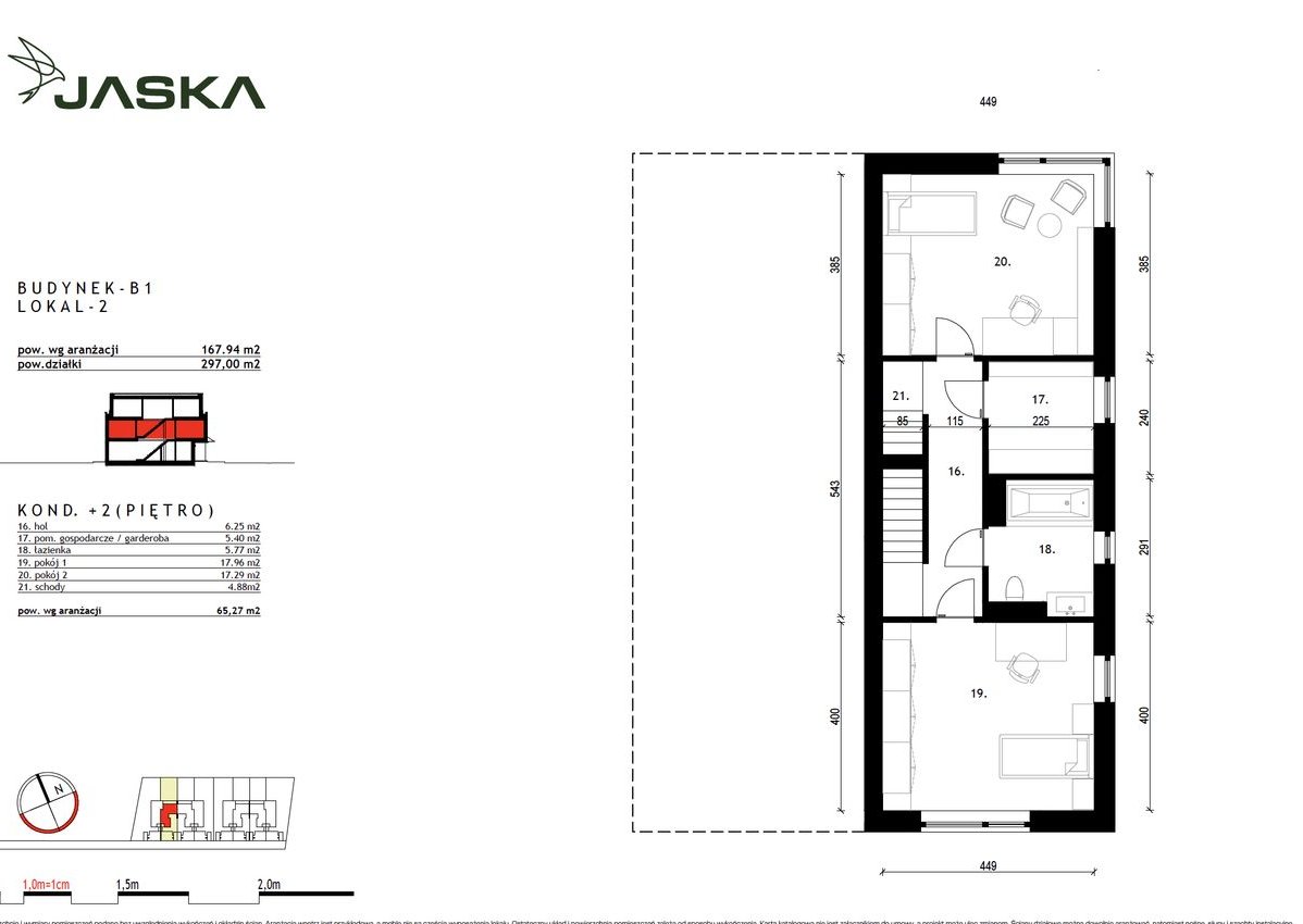 Powierzchnia działki przynależnej do lokalu B1L2 – 297 m2