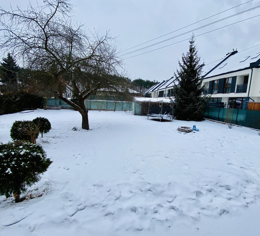 Duża działka o powierzchni 990 m² daje wiele możliwości aranżacyjnych. Teren ogrodzony z szeroką bramą wjazdową, teren obsadzony tujami, podjazd oraz taras wyłożony kostką.
