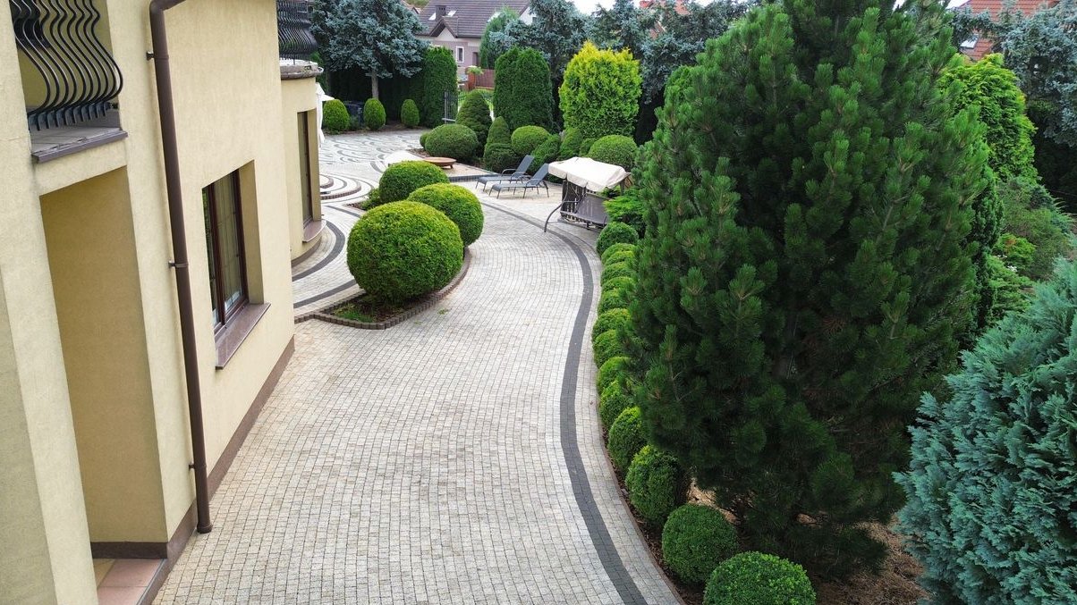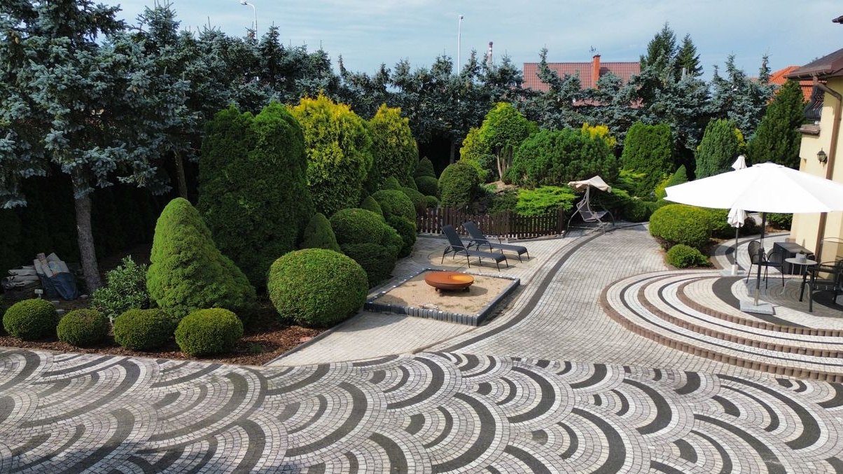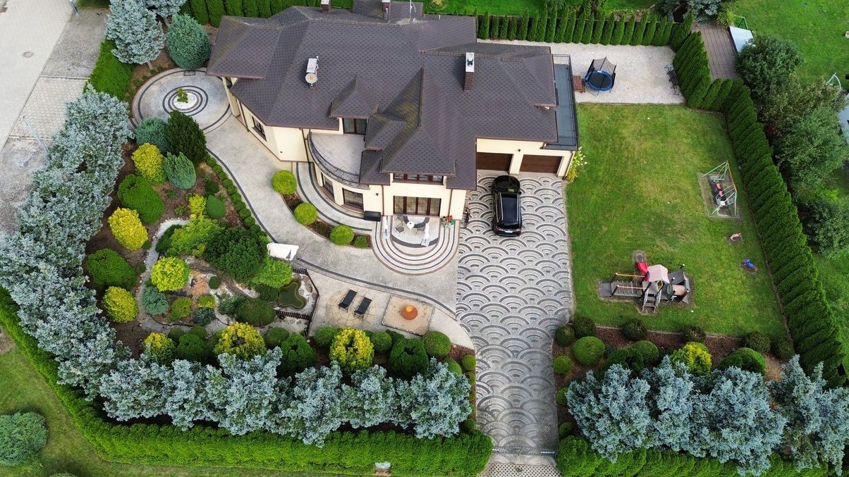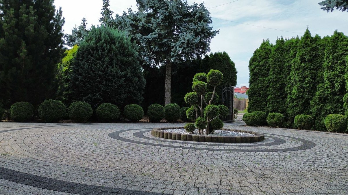 Działka o powierzchni 1900 m² jest starannie zagospodarowana – piękne nasadzenia tworzą przyjemną przestrzeń wypoczynkową i estetyczną otoczkę nieruchomości. Dwie bramy wjazdowe na teren, sterowane pilotami, zapewniają wygodny i bezpieczny dostęp do posesji.