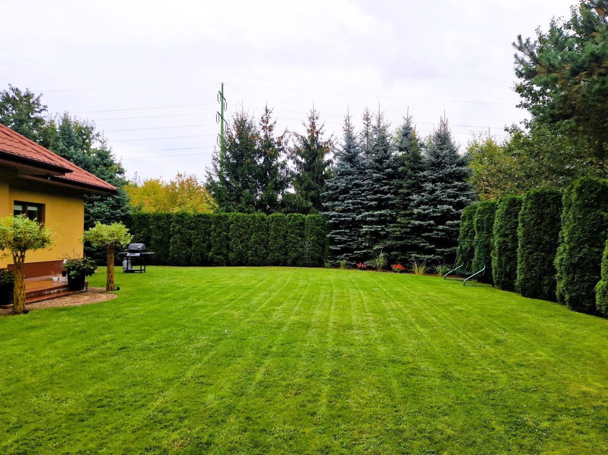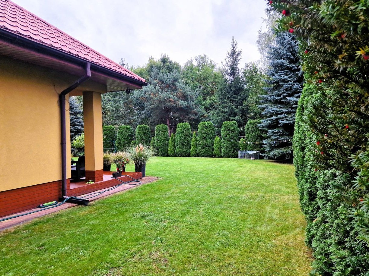 Otoczony zielenią, ogród to prawdziwa oaza spokoju. Znajdziesz tu starannie dobrane krzewy ozdobne, korę, piękne róże oraz tuję, które rosną wzdłuż ogrodzenia, zapewniając prywatność i tworząc klimatyczne otoczenie. Kilka sosen dodaje charakteru tej zielonej przestrzeni to miejsce idealne na relaks, grillowanie czy spędzanie czasu na świeżym powietrzu z rodziną i przyjaciółmi.