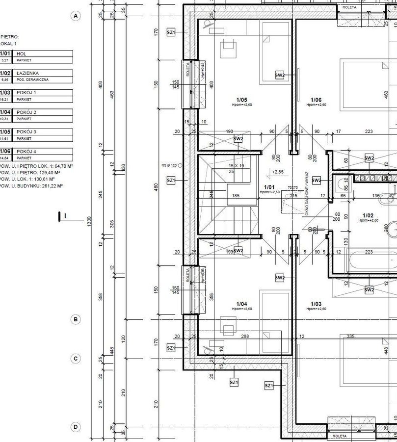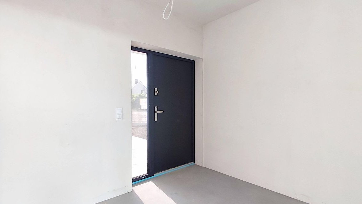 Na piętrze czekają cztery sypialnie, druga łazienka oraz przedpokój – przestrzeń idealna dla rodziny, pracy zdalnej czy kreatywnej pasji.