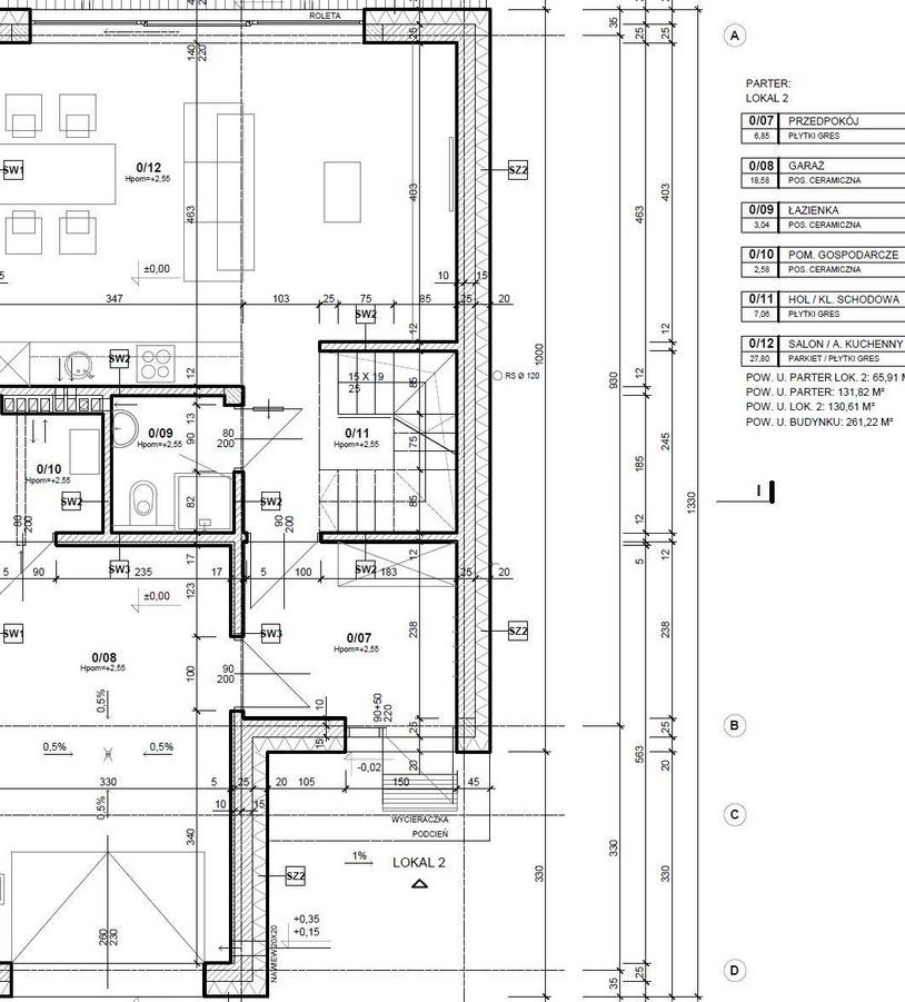 Parter domu zaprasza przestrzenią – znajdziesz tu jasny salon z aneksem kuchennym, łazienkę, wiatrołap, garaż oraz pomieszczenie gospodarcze.