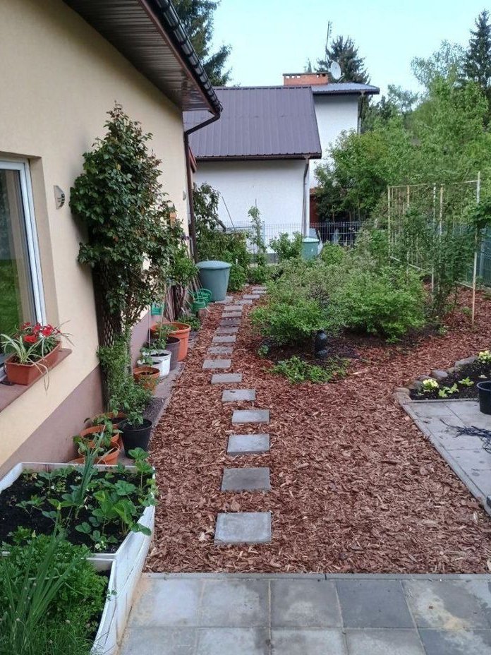 Ogród z licznym nasadzeniami zaprasza w długie letnie wieczory.