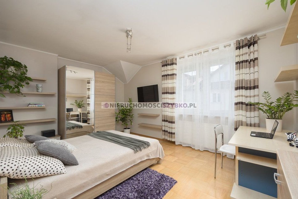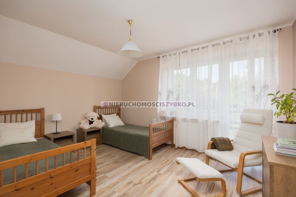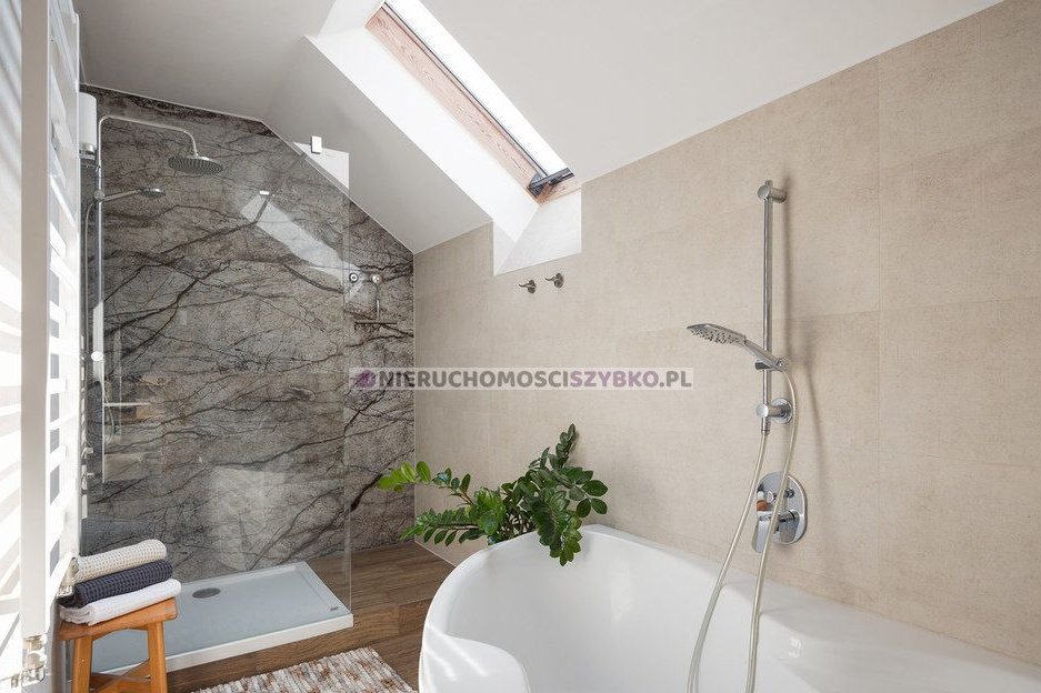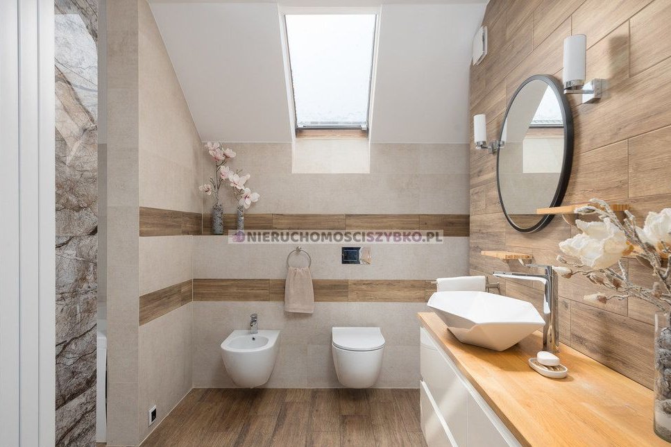 Ten przestronny dom o powierzchni 258,7 m² to prawdziwa oaza komfortu. Otwarty salon z kominkiem i jadalnią, połączony z tarasem, to idealne miejsce na rodzinne spotkania i relaks. Nowoczesna kuchnia z frontami z litego drewna spełni oczekiwania nawet najbardziej wymagających kucharzy. Trzy przytulne sypialnie na piętrze oraz dodatkowa łazienka w półpiwnicy gwarantują wygodę wszystkim domownikom.