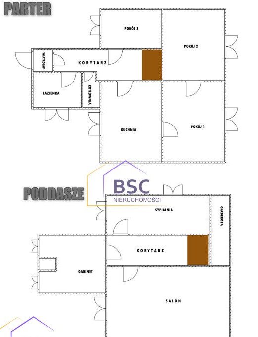 Piętro: korytarz - 2,5 m2; salon (6)- 33 m2; pokój 4 -17 m2; pokój 5 - 13,5 m2; Razem: około 66 m2. Dodatkowo jest garderoba (ze skosami) po podłodze 9 m2.