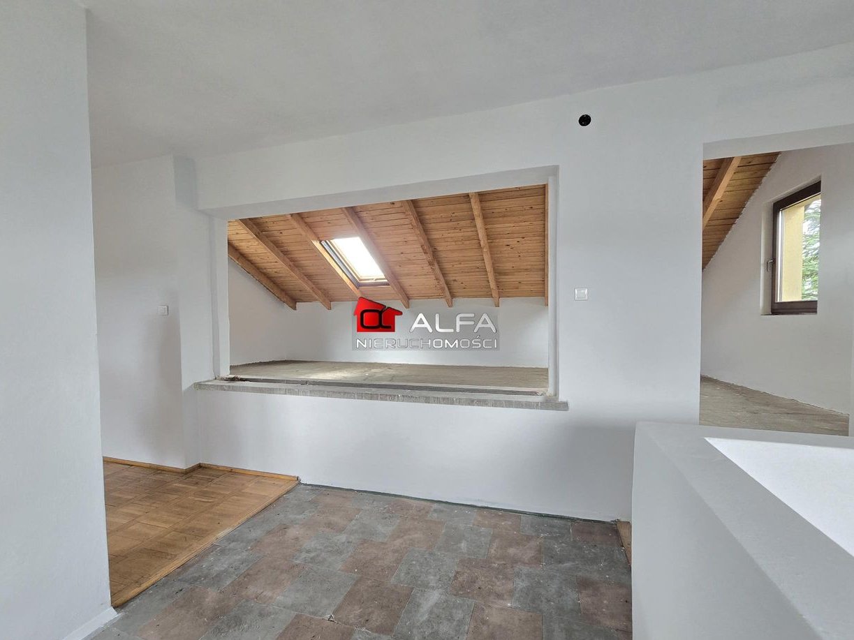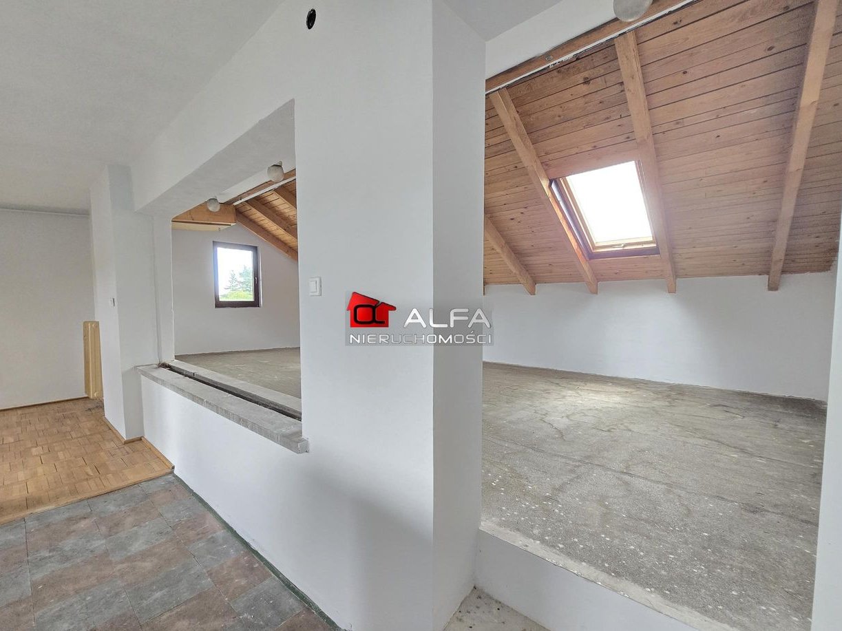 W domu są wymienione drewniane okna, na podłogach parkiet oraz kafle, schody drewniane modrzewiowe. Na parterze rolety antywłamaniowe.