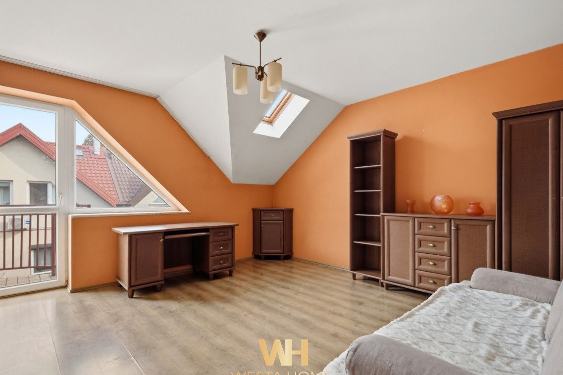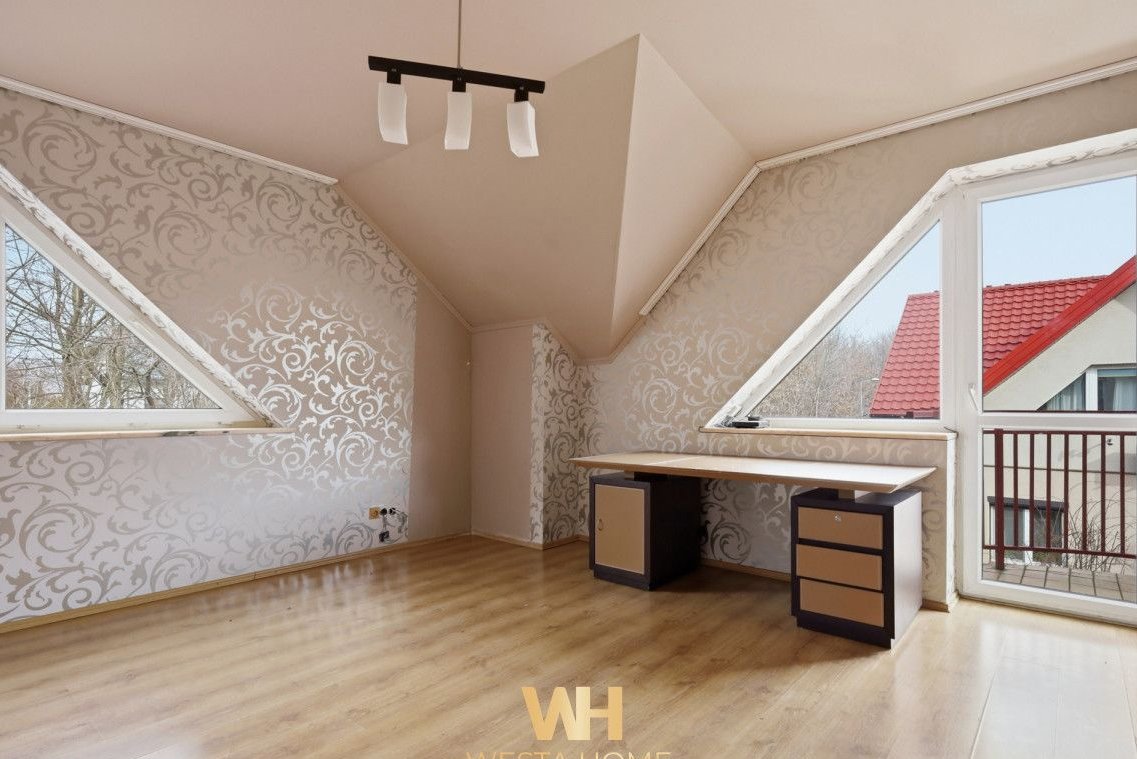 -użytkowe poddasze, które może pełnić funkcję gabinetu, pokoju rekreacyjnego lub dodatkowej przestrzeni do przechowywania,