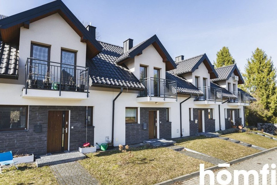 The house is situated in an intimate residential development surrounded by greenery. The building, completed in 2021, features a high standard of finish. The surroundings consist mainly of single-family homes, which further emphasizes the quiet and private character of the neighborhood.
