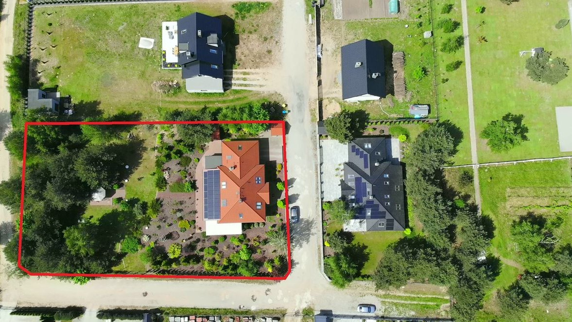 Dom położony jest w spokojnej okolicy podmiejskiej, blisko lasu i jeziora, co zapewnia doskonałe warunki do mieszkania i wypoczynku. W pobliżu znajduje się sklep spożywczy. W okolicy dostępne są różne tereny zielone, idealne na spacery i rekreację. Zwolennikom aktywnego trybu życia spodoba się ścieżka rowerowa i niewielka odległość do Jeziora Niskie Brodno.