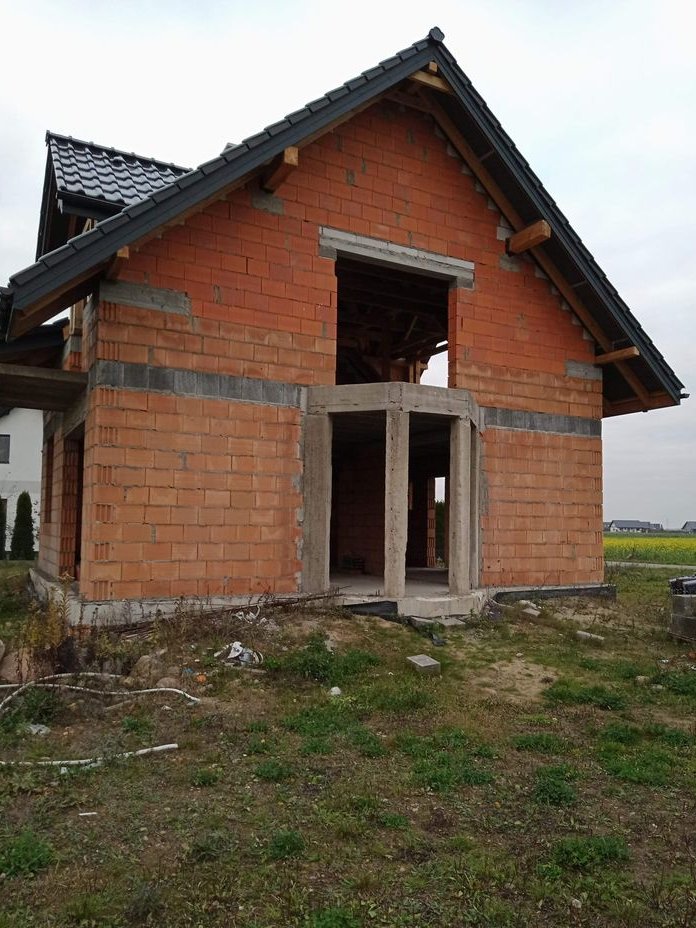 Dom o powierzchni 158 m² ma 6 pokoi i jest w stanie surowym otwartym.