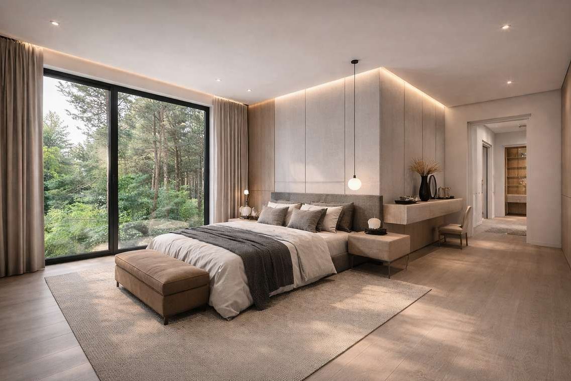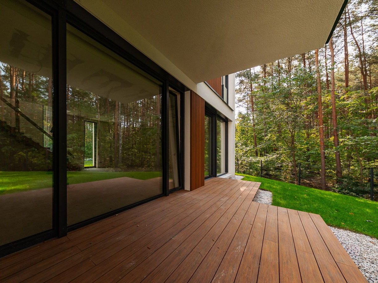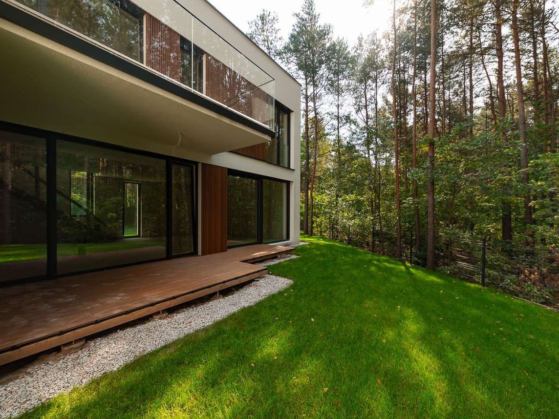 • Architektura i design – nowoczesna bryła z dużymi przeszkleniami, idealnie wkomponowana w leśne otoczenie.