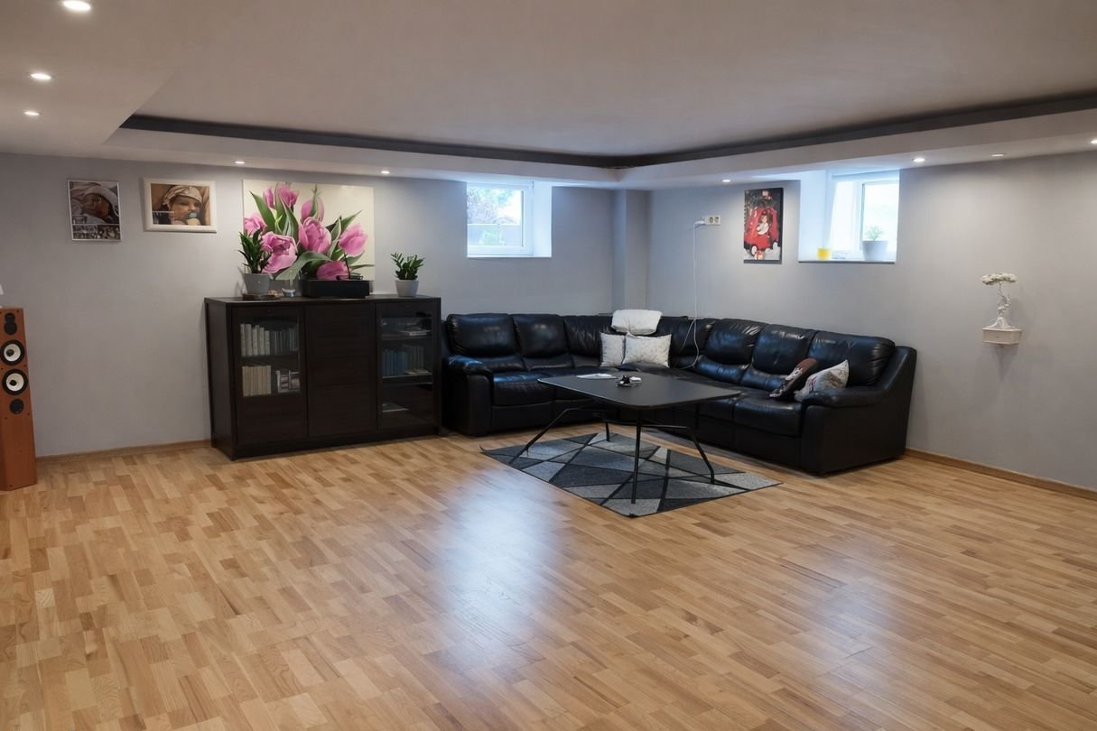 pełne podpiwniczenie + urządzona część mieszkalna w piwnicy