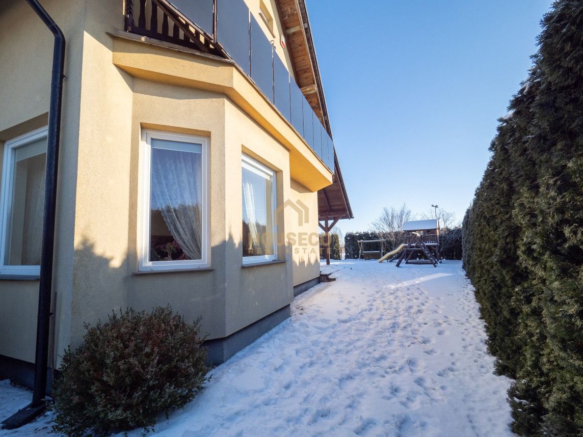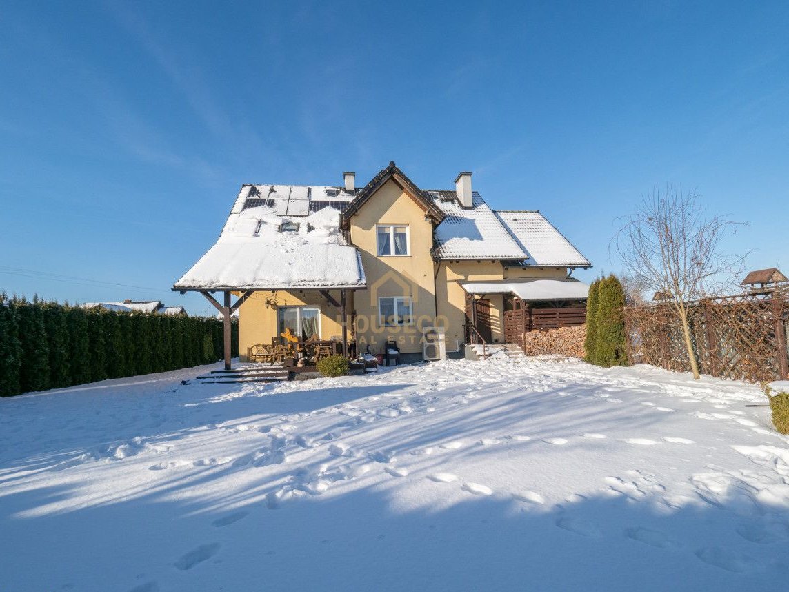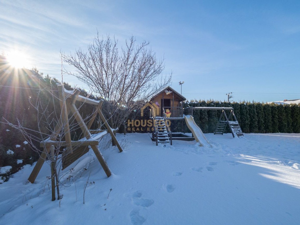 Duża działka z pięknym, zadbanym ogrodem i naturalnym zadrzewieniem daje poczucie prywatności i wolności. Widok na pola uspokaja i pozwala naprawdę odpocząć.