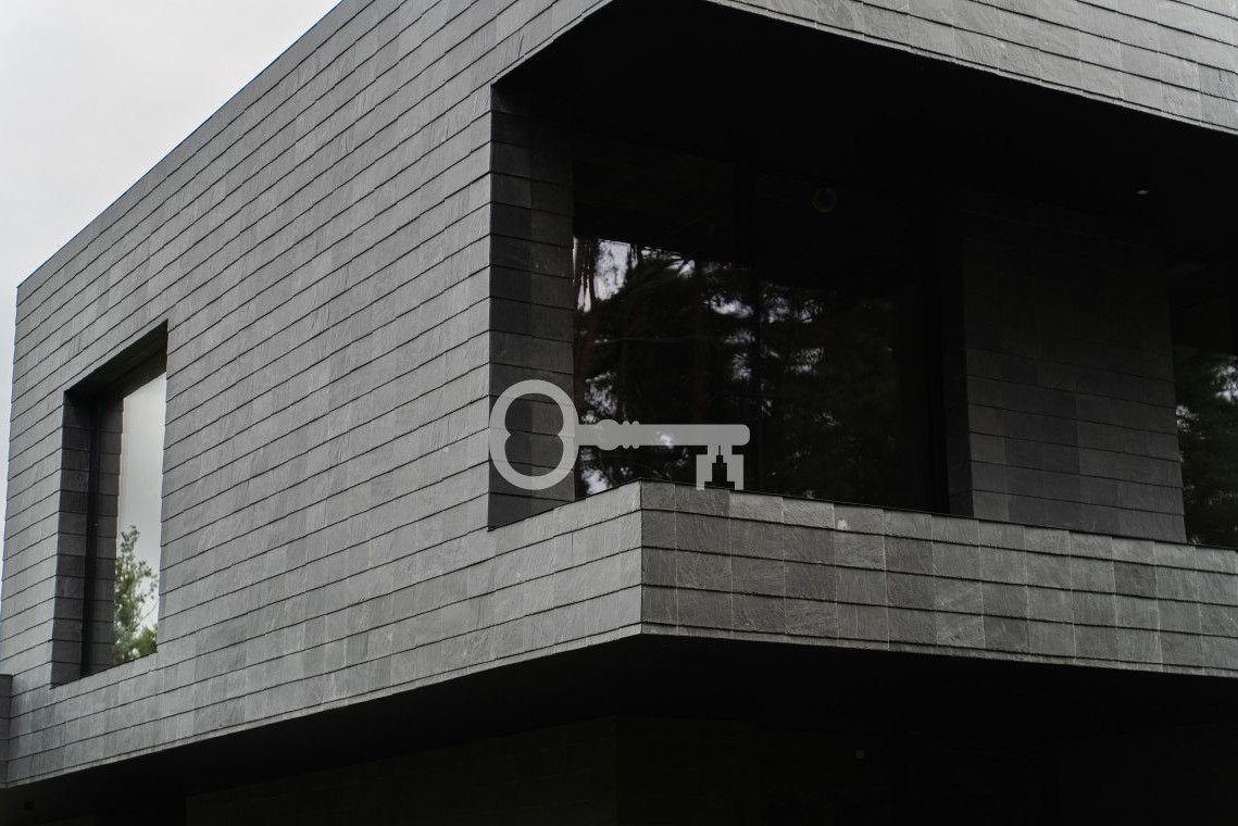 * Elewacja wentylowana ognioodporna: konstrukcja aluminiowa Hilti, wełna mineralna, płyty ognioodporne i naturalny łupek (Hiszpania),