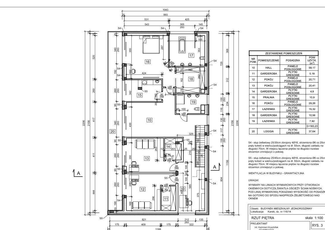 Piętro - ok. 183 m² + taras 37 m²: