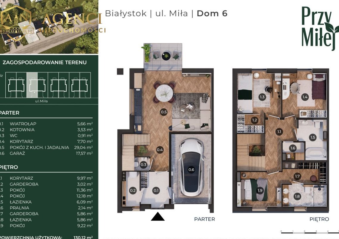 Inwestycja obejmuje 8 domów o powierzchni 130,12 m², każdy usytuowany na przestronnej działce o powierzchni 281 m².