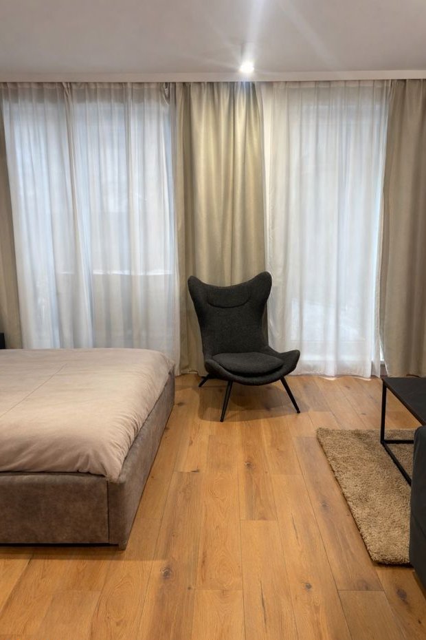 Przestronny pokój dzienny z częścią sypialnianą. Układ pozwala na wydzielenie 2 osobnych pomieszczeń.