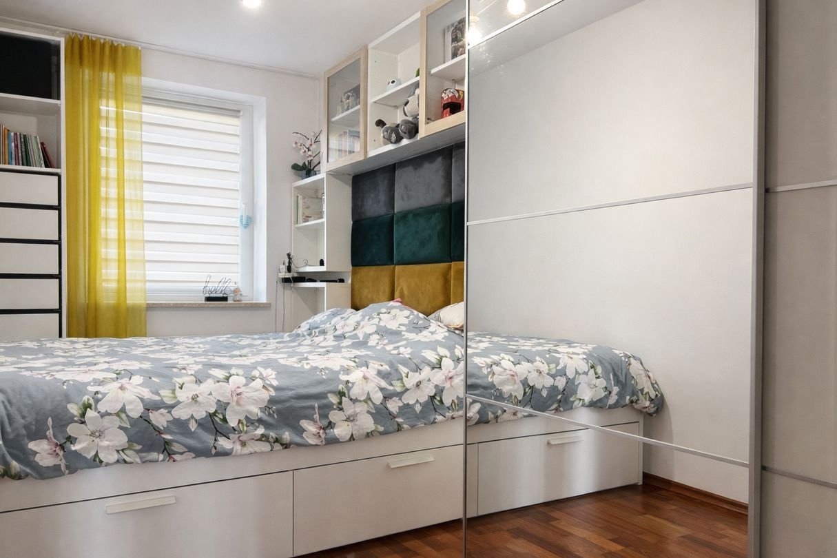 Mieszkanie jest dwustronne, co zapewnia dobrą wentylację oraz komfort użytkowania na co dzień. Okna salonu wychodzą na południe, dzięki czemu strefa dzienna i loggia jest doskonale doświetlona przez większą część dnia. Z kolei kuchnia i sypialnia usytuowane są od strony północnej, co sprawia, że pomieszczenia te nie nagrzewają się nadmiernie latem.