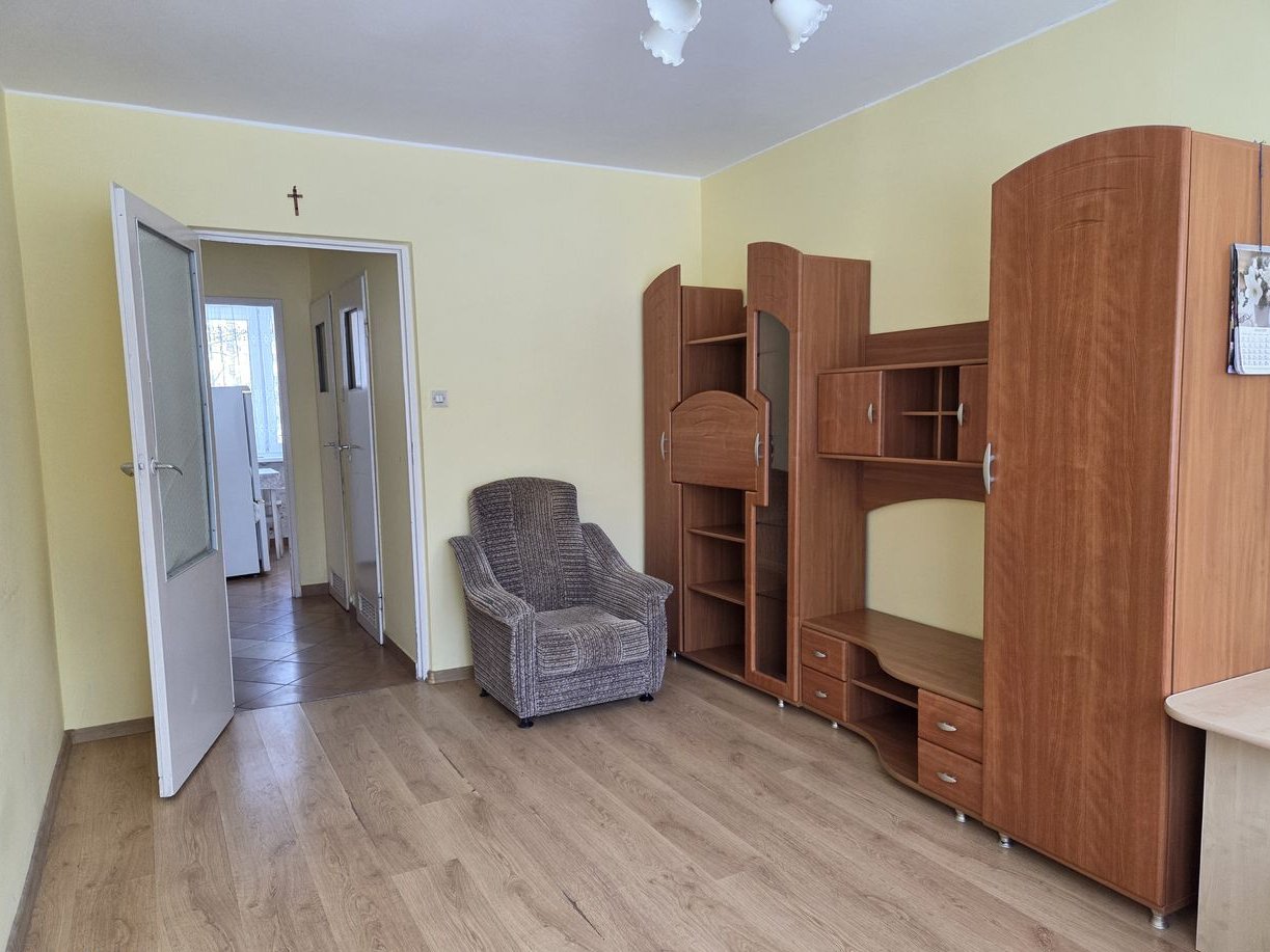 Mieszkanie znajduje się na parterze w bloku zarządzanym przez Spółdzielnię Mieszkaniową. Jest to lokal dwustronny, co sprawia, że jest dobrze doświetlony.