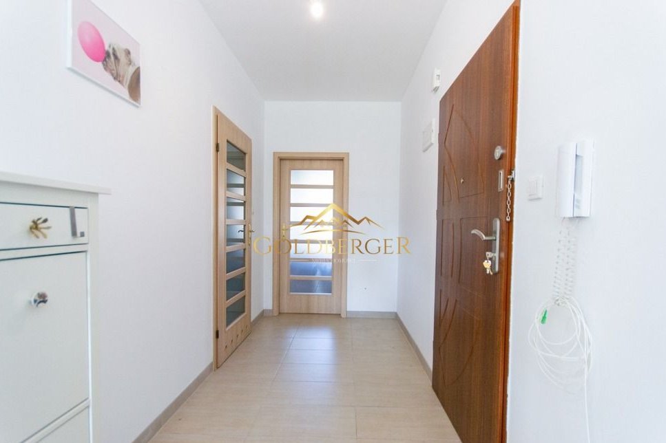 Przestronny korytarz stanowi dodatkowy atut mieszkania. Jest na tyle duży, że bez problemu zmieści pojemną szafę w zabudowie lub komodę, co zapewnia wygodne przechowywanie i pomaga utrzymać porządek. Szerokie przejście sprawia, że mieszkanie już od wejścia daje poczucie przestrzeni i komfortu.