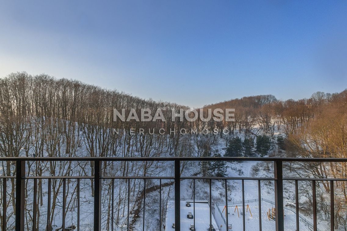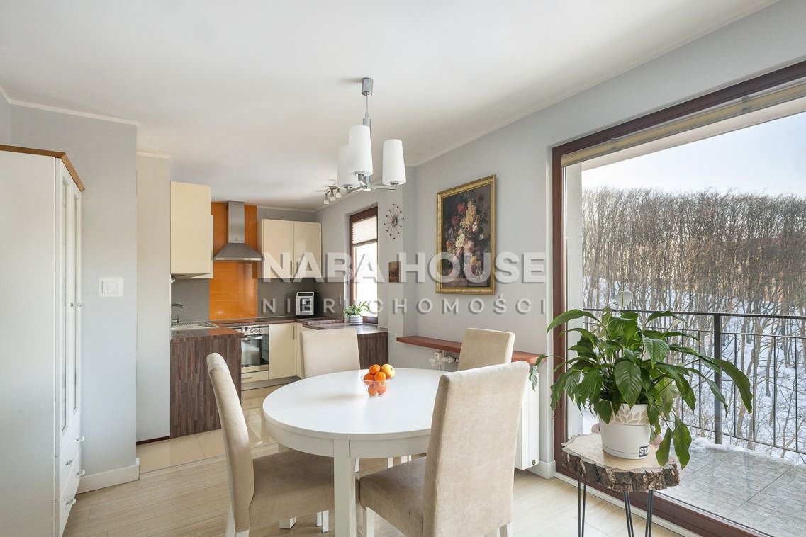 Wnętrze jasne i przytulne, podzielone na funkcjonalne strefy. Aneks kuchenny z oknem, które wychodzi na zieleń, z ładnym widok na las. Dobrze wyposażona kuchnia z całym potrzebnym sprzętem AGD. W salonie duży stół jadalny na obiady rodzinne i kolacje z przyjaciółmi. Olbrzymie przeszklenie z wyjściem na balkon o ekspozycji zachodniej zapewnia duża ilość światła w pomieszczeniu i niczym żywy obraz ukazuje cztery pory roku wraz ze zmieniająca się naturą za oknem. Widok z okien na zalesione wzgórze. Śnieg, zielone liście wiosną czy piękne kolory jesieni można podziwiać z balkonu i z kanapy w pokoju dziennym. W części wypoczynkowej duża wygodna sofa, zapraszająca do relaksu lub obejrzenia ulubionego serialu. Przy stoliku miejsce na kawę z przyjaciółką.
