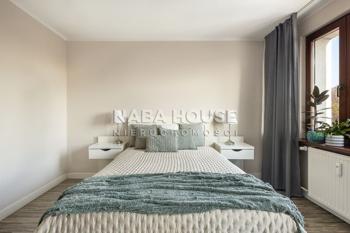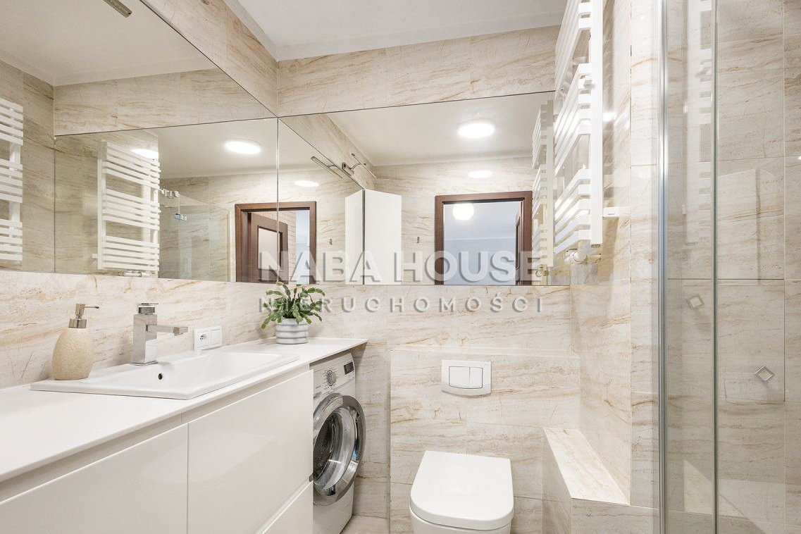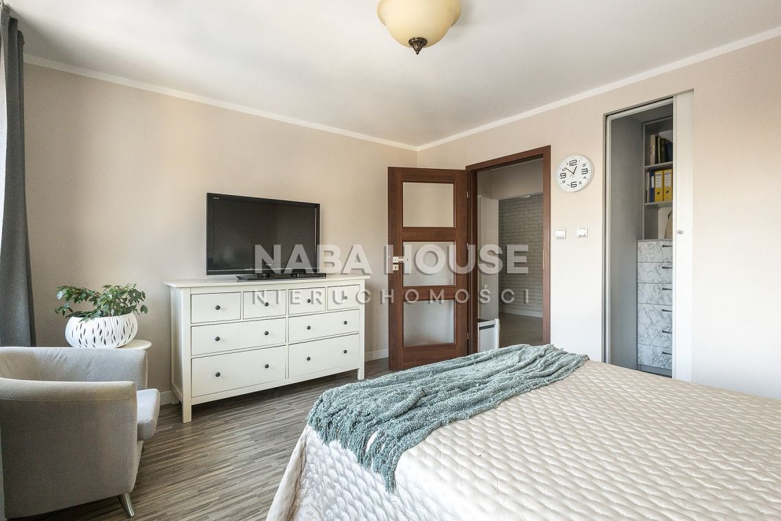 W sypialnia podwójne łóżko oraz pojemne komody. Bezpośrednio z sypialni jest wejście do garderoby, to wygodne miejsce na ubrania, szereg półek i wieszaków. Okna sypialni z wschodnią ekspozycją dzięki czemu, wschodnie słońce buzi od rana i zielony widok umila poranki. Całość dopełnia estetyczna łazienka z prysznicem, z pralką.